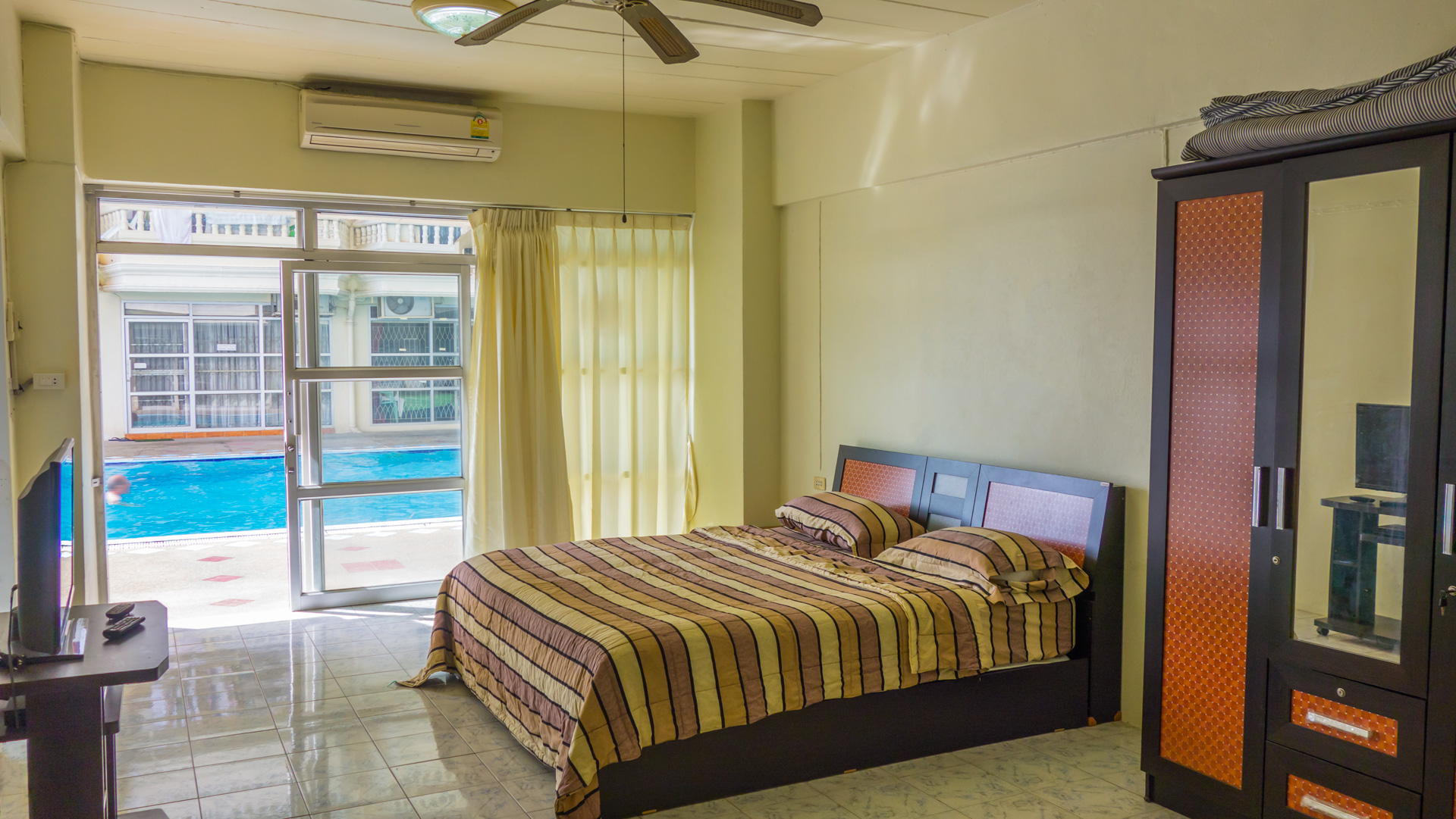An ideal choice for those who are looking for a low budget condo to rent in Pattaya city in a convenient and central location. The swimming pool is also visible from this unit.